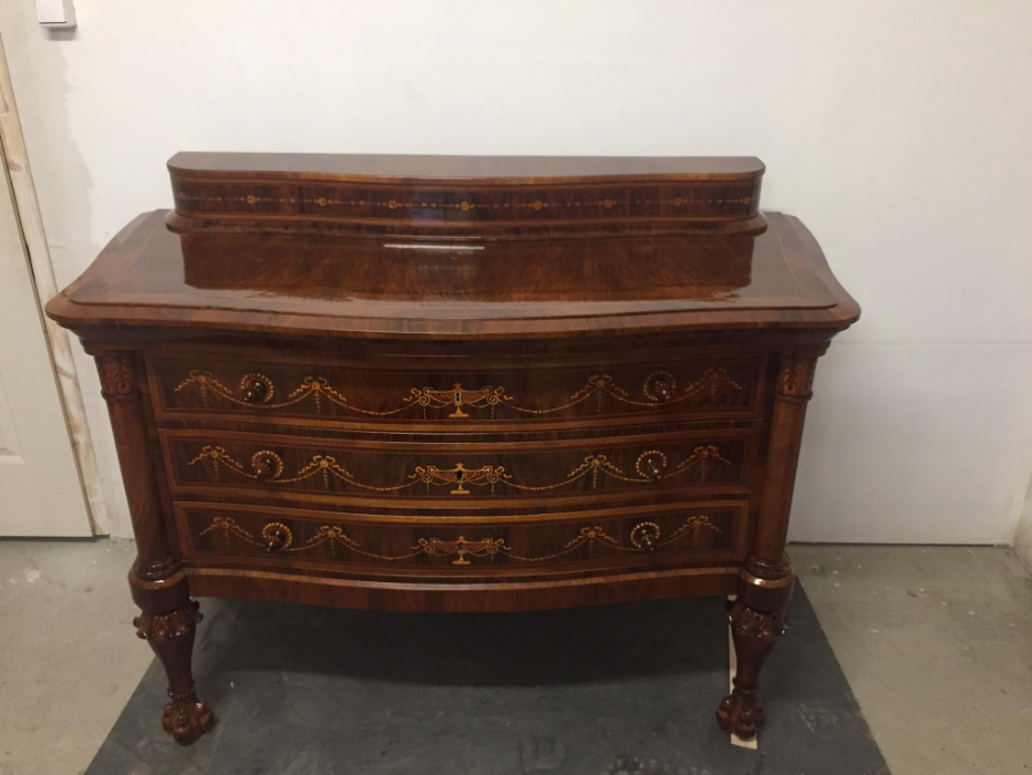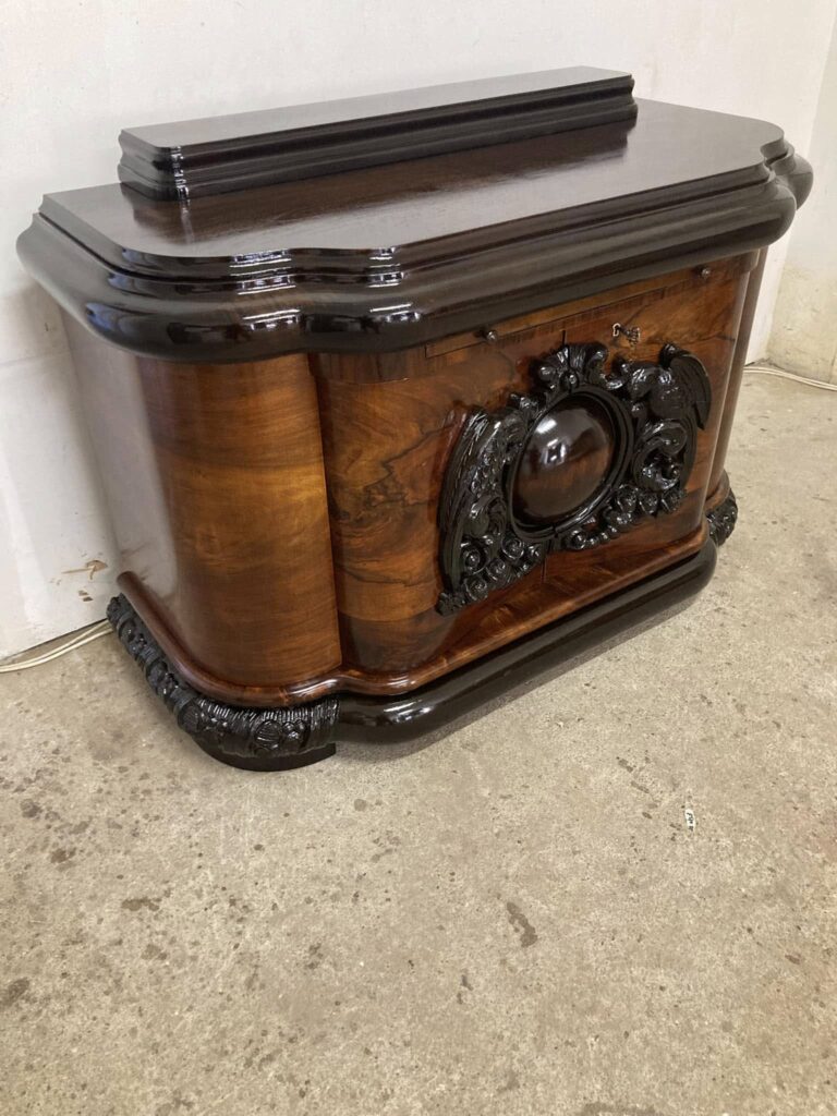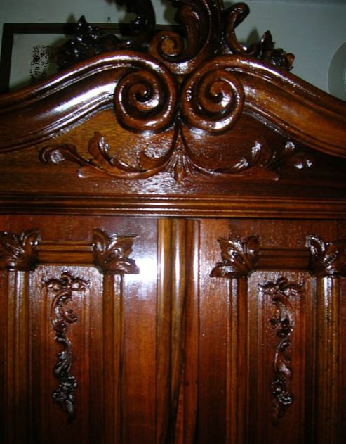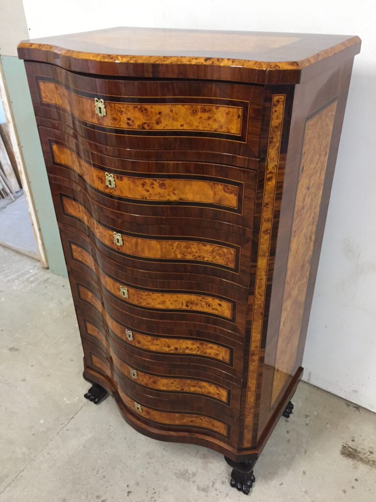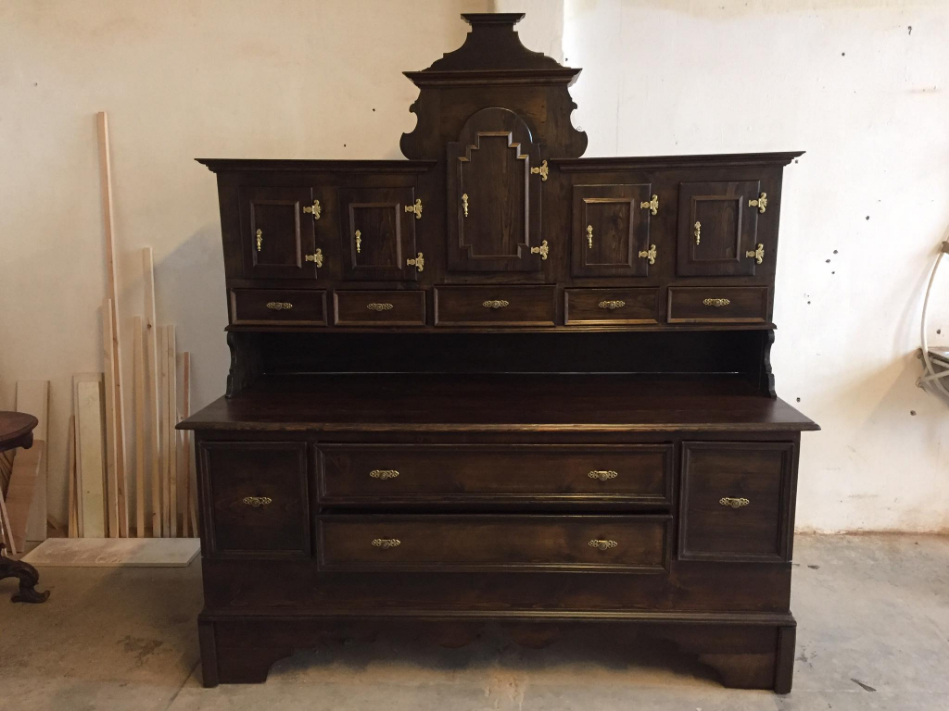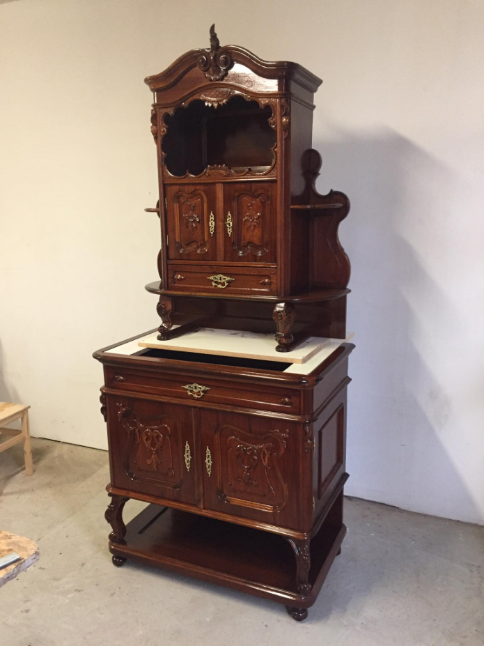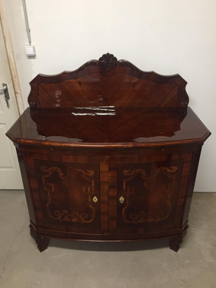 A családi örökségként kapott találó szekrényem Tibor hozzáértő és gondos munkájának köszönhetően régi pompájában tündököl, a lakás hangulatának meghatározó darabja lett.